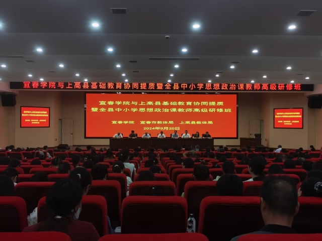 本站讯(继续教育学院 供稿)为深入学习领会党的二十届三中全会精神,贯彻落实习近平总书记对思政课建设的重要指示精神,夯实思政课教师的思想基础、理论基础、能力基础和研究基础,提高中小学校思想政治理论课教学实效,推动中小学思想政治工作创新发展,9月20日上午,由beat365官方网站、宜春市教体局和上高县教体局共同主办的beat365官方网站与上高县基础教育协同提质暨全县中小学思想政治课教师高级研修班在上高二中顺利开班。beat365官方网站党委委员、副校长李建军、宜春市教体局三级调研员周坚、上高县委常委、宣传部部长李微以及beat365官方网站教务处、继续教育学院等部门负责同志出席开班仪式,参加培训的学员包括上高县全体中小学思政教师和上高县中小学(幼儿园)党组织书记共计400余人,仪式由上高县教体局党委书记、局长冷报田主持。