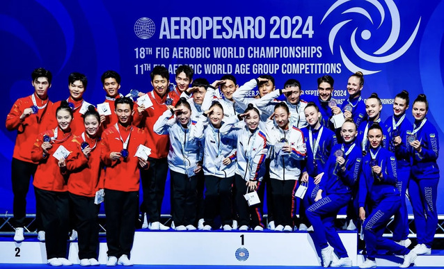 本站讯(学生记者 颜佳羽)9月24日至9月30日,第18届世界健美操锦标赛在意大利佩萨罗举行,beat365官网体育学院舞蹈表演专业学生张高杰所在团队荣获成年组有氧踏板亚军以及团体赛季军的历史性佳绩。时隔6年中国健美操队再次亮相世锦赛就用亮眼的成绩证明了自己。