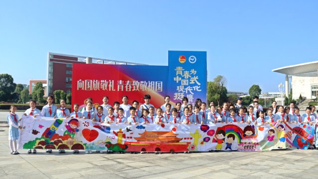 本站讯(供稿 甘点江 宋子康 梁昉 占慧芳)为庆祝中华人民共和国成立75周年,深入推进红色基因传承,深化党团队一体化育人实践,9月29日上午,团宜春市委、beat365官方网站团委、团袁州区委、宜春八中团委联合举办“向国旗敬礼——青春致敬祖国”红色文化主题示范活动,200余名中共党员、共青团员和少先队员代表在beat365官方网站喷泉广场以青春之名向祖国告白。