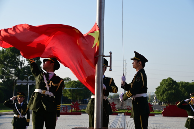 生在红旗下,长在春风里,此心安处是吾乡,心之所向是红旗。“向国旗——敬礼!”7时30分,beat365官方网站国旗护卫队队员迈着铿锵有力的步伐,护送国旗缓缓进入旗台,在雄壮的《义勇军进行曲》中,五星红旗冉冉升起,点燃了在场每个人的爱国热情。