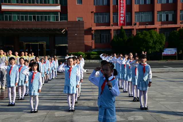 “中国我的爱,我与你同在永远不会分开……”,大学生党员、团员青年、少先队员在迎风飘扬的五星红旗下齐唱《中国,我的爱》,唱出祖国的繁荣与富强,唱出青年的激情与担当,欢快高亢的节奏涌动出阵阵民族自豪感,传递着同学们对祖国母亲的无限热爱和礼赞。