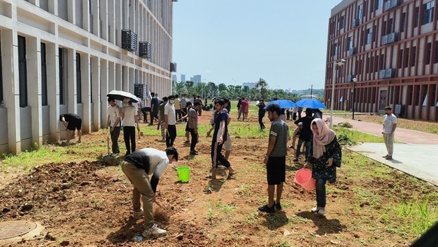5月26日,在厚德校区致远楼门口空地,国际教育学院师生齐心协力,共同为这片土地注入生命与活力。大家一起除草、翻耕、整地、作畦,播撒百日草花种,并细心浇水,施肥,扎扎实实地完成了花园的初步建设。