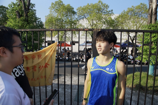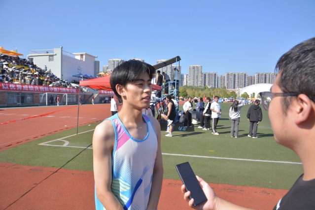激情澎湃的100米比赛正精彩的在田径赛场上上演,来自数计学院的余玉麟刚刚结束比赛,额头上还挂着晶莹的汗珠,当被问及参加校运会的感受时,他兴奋地说:“短跑不仅仅是速度的较量,更是对自我极限的挑战。每一次起跑都如同离弦之箭,是挑战自我、超越自我的契机。零点几秒的差距就决定了胜负,我必须将全部的力量凝聚在每一个瞬间,紧紧抓住每一个可能的机会。每一场比赛都是通往更高体育境界的阶梯,我要从每一次的竞赛中汲取经验,不断打磨自己,向着更快、更强的目标奋勇前行。我觉得这就是青年学子该有的模样,也是我不断追逐速度极致的原因”。