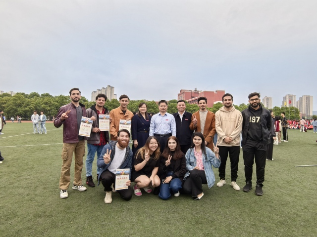 仪式结束后,校领导一行看望留学生代表队