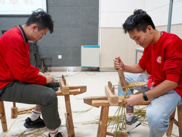 “一系一搓一挽一编一压一敲”,学员们在当地手工师傅们指导下学编草鞋。在一系一搓间,感受到革命信念的厚重;在一挽一编中,体会到团结奋斗的力量;在一压一敲时,领悟到星火燎原的荣光。小小的草鞋承载的是勤劳节俭、艰苦奋斗的“草鞋”精神。“红米饭,南瓜汤,秋茄子,味好香,餐餐吃得精打光......”学员们传唱红歌,喊着号子,沉浸在那段峥嵘岁月之中,感受到井冈山军民同甘共苦的深厚情谊和不畏艰难险阻的革命乐观主义精神。