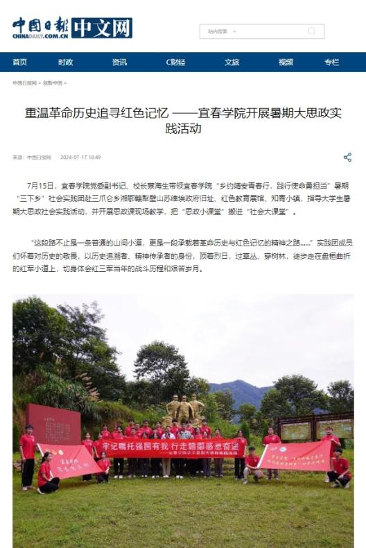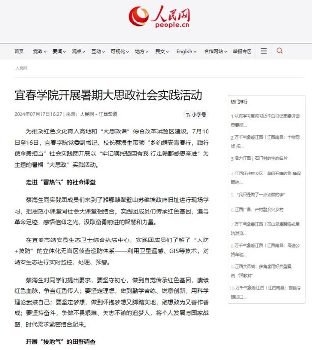 今年7月至8月,根据江西省委教育工委、江西省教育厅《关于开展“牢记嘱托强国有我 行走赣鄱感恩奋进”——江西省高校学子暑期大思政实践活动的通知》精神,beat365官网采取“1+3”实践队伍体系,以“瓷”为主线路,结合靖安乡村路线、铜鼓红色路线、南昌文化路线,实践队员们一路走一路学,沉浸式品味和感悟中华文明的源远流长,在社会实践中挺鹰担当,为乡村振兴贡献青春力量,用实际行动践行了“请党放心、强国有我”的青春誓言。