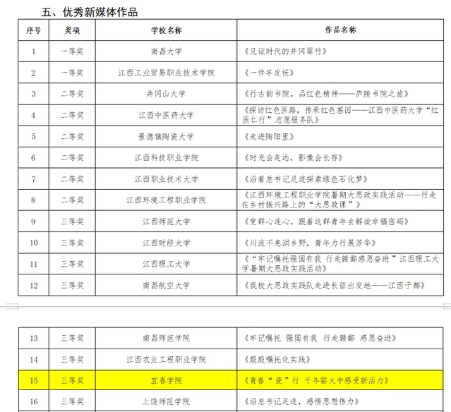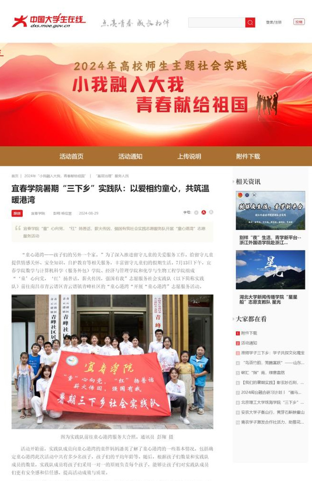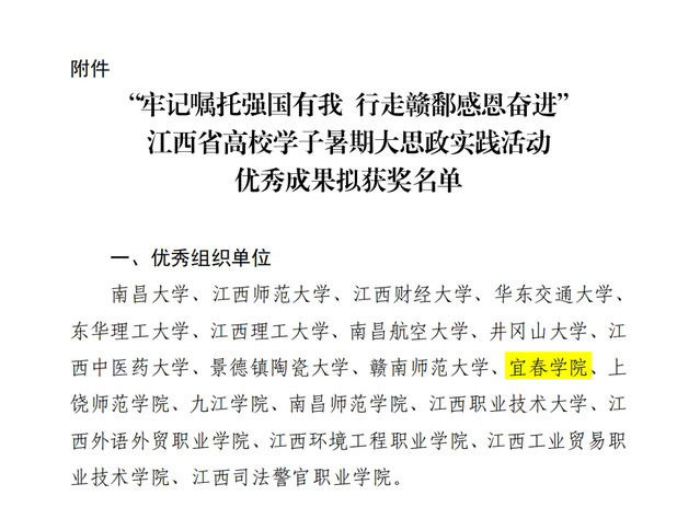 本站讯(记者 叶茂菲)日前,江西省教育厅公布了2024年江西省高校学子暑期大思政实践活动优秀实践成果评选结果,beat365官网获评优秀组织单位、优秀宣讲视频一等奖、优秀新媒体作品三等奖,学生安婕妤获评优秀实践个人。