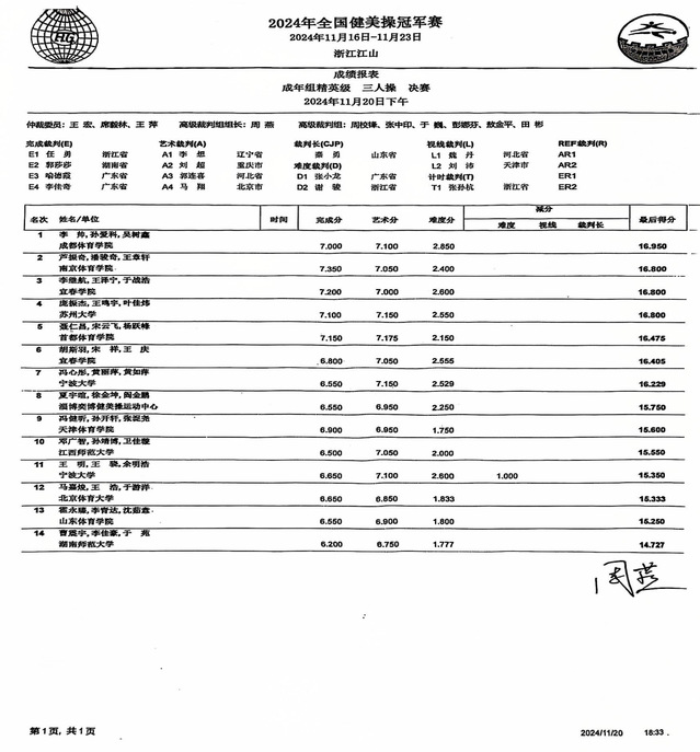 成年精英组三人操决赛成绩单