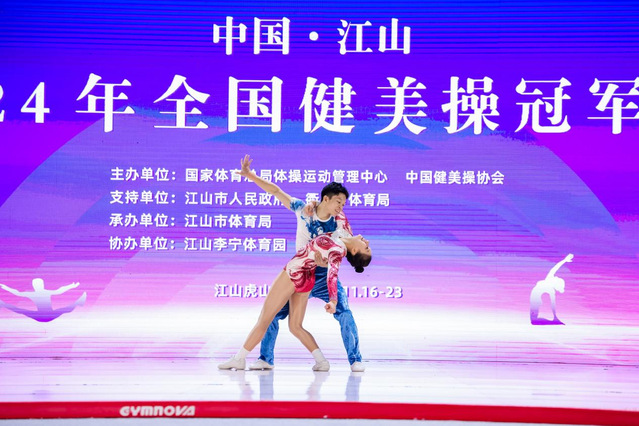 本站讯(学生记者 郭首秀) 11月16日至23日,由国家体育总局体操运动管理中心主办,中国健美操协会、江山市体育局承办的2024年全国健美操冠军赛在江山虎山运动公园体育馆举行。本次赛事吸引了全国各地的114个单位,1100余人参加,是我国健美操单项最高级别赛事。