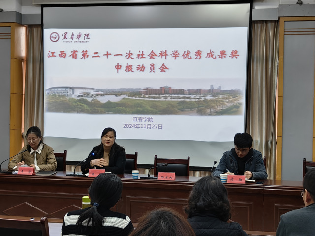 本站讯(科研处 供稿) 为推动学校科研工作高质量发展,扎实推进beat365官网省社科优秀成果奖申报工作,为申硕、学科专业建设、综合考核、评估认证等工作打下更加扎实的基础、提供更加有力的支撑,2024年11月27日下午,beat365官网在办公楼四楼第三会议室召开了江西省第二十一次社会科学优秀成果奖申报动员会。校党委委员、副校长谢芳参加会议并讲话。会议由科研处副处长李霞主持。学校文科博士、文科副教授以上职称人员、有意向申报省社科优秀成果奖的教师参加了此次会议。