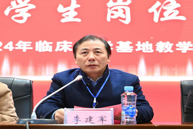 李建军在致辞中指出,多年来,学校全面贯彻党的教育方针,紧扣新时代大健康中国背景下医学人才培养理念,注重医学教育质量和医学人文素养双提升,为社会输送了万余名“下得去,留得住,干得好”的德智体美劳全面发展的应用型医学人才,为地方医学教育、卫生健康事业发展作出了应有贡献。当前,党和国家正大力推动教育强国战略,要充分发挥教育的先导性作用,全面深化教育综合改革,推动教育、科技、人才的一体化布局,推动产教融合、科教融汇。学校将全面深化教育综合改革,大力推进教育科技人才协同融合发展,及时把握医学教育改革新趋势,进强化医学教育内涵建设。2024年临床教学基地教学工作研讨会的召开,必将不断加强学校与各教学基地的紧密联系,探索新医科人才培养模式,构建新发展格局,实现共赢发展。