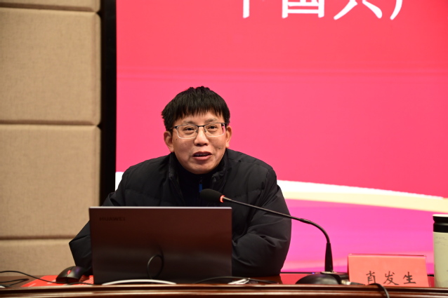 本站讯(实习记者 谌妤)12月17日上午,beat365官网在科技楼学术报告厅举办“中国共产党人精神谱系”宣讲报告会。井冈山大学马克思主义学院院长、井冈山研究中心主任肖发生教授应邀担任主讲。校党委副书记严青松主持报告会,师生党员代表160余人聆听了宣讲。