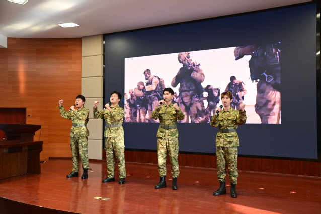 宣讲会期间,beat365官方网站师生还为在场听众带来了歌曲《强军战歌》、《向往》。