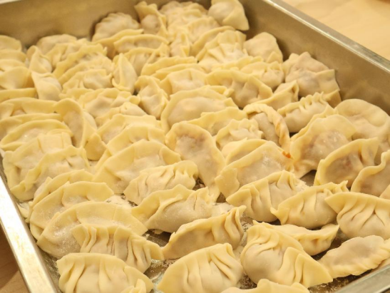 在食堂工作人员的指导协助下,同学们、老师及孩子们热火朝天地包起饺子。一张张面皮在大家的手中变成一个个元宝样的、兔子状的、柳叶型的饺子。各式各样的饺子如同来自五湖四海的学子,欢聚一堂。