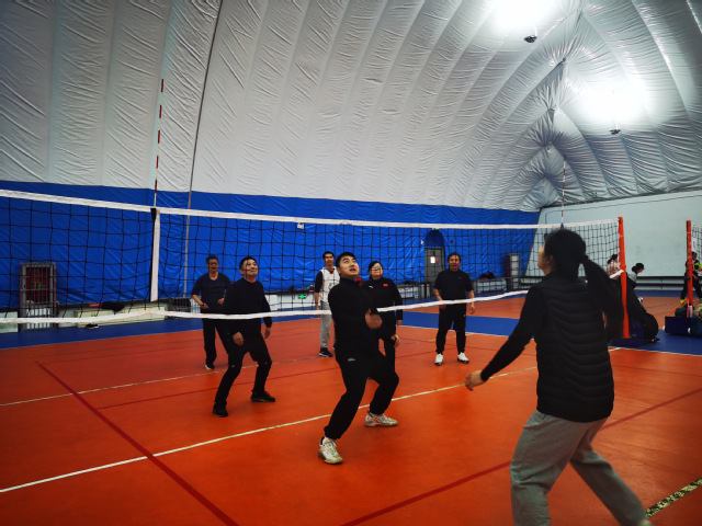 赛场上,教职工们化身运动健儿,他们或精准发球,或巧妙拦网,或默契配合,每一次得分都伴随着场边观众的热烈掌声与欢呼声。比赛中,不仅有激烈的对抗,更有温馨的互助,展现了教职工们在工作之外的另一面——团结协作、勇于拼搏的精神风貌。