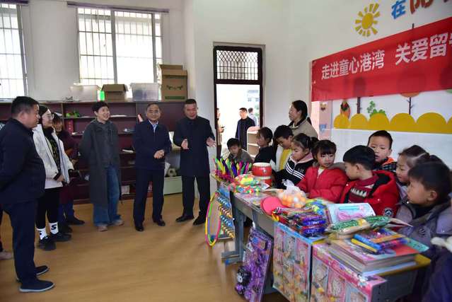 在石桥村,李国金考察调研beat365官方网站童心港湾、上四坊青钱柳茶业有限公司、非遗古法造纸研学工坊,走访慰问驻村工作队以及生活困难群众。