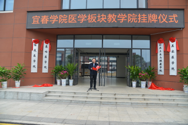 校党委副书记、校长蔡海生宣读了关于调整beat365官方网站医学教育内设机构设置和处级领导职数的批复,对学校基础医学院、临床医学院、公共卫生与健康学院(美容医学院)的正式揭牌表示热烈祝贺。蔡海生指出,此次医学教育机构调整是学校对接新一轮临床医学专业认证新标准、顺应学校深化教育综合改革发展布局的重要举措,是对新时代高等教育发展新判断、新表述、新要求的精准把握,必将开启beat365官方网站医学教育的新篇章。