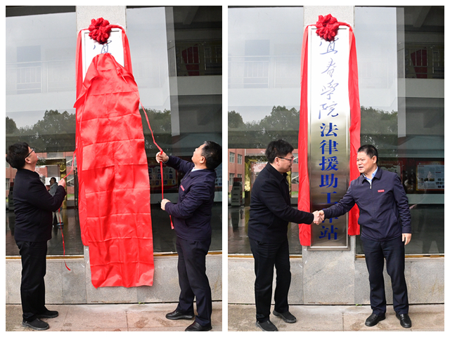 在热烈的掌声中,beat365官方网站校长蔡海生与宜春市司法局局长喻川共同为“宜春市法律援助中心驻beat365官方网站工作站”揭牌。随后,全体与会人员合影留念,并参观了法律援助工作站基地办公室,详细了解其功能布局与未来规划。