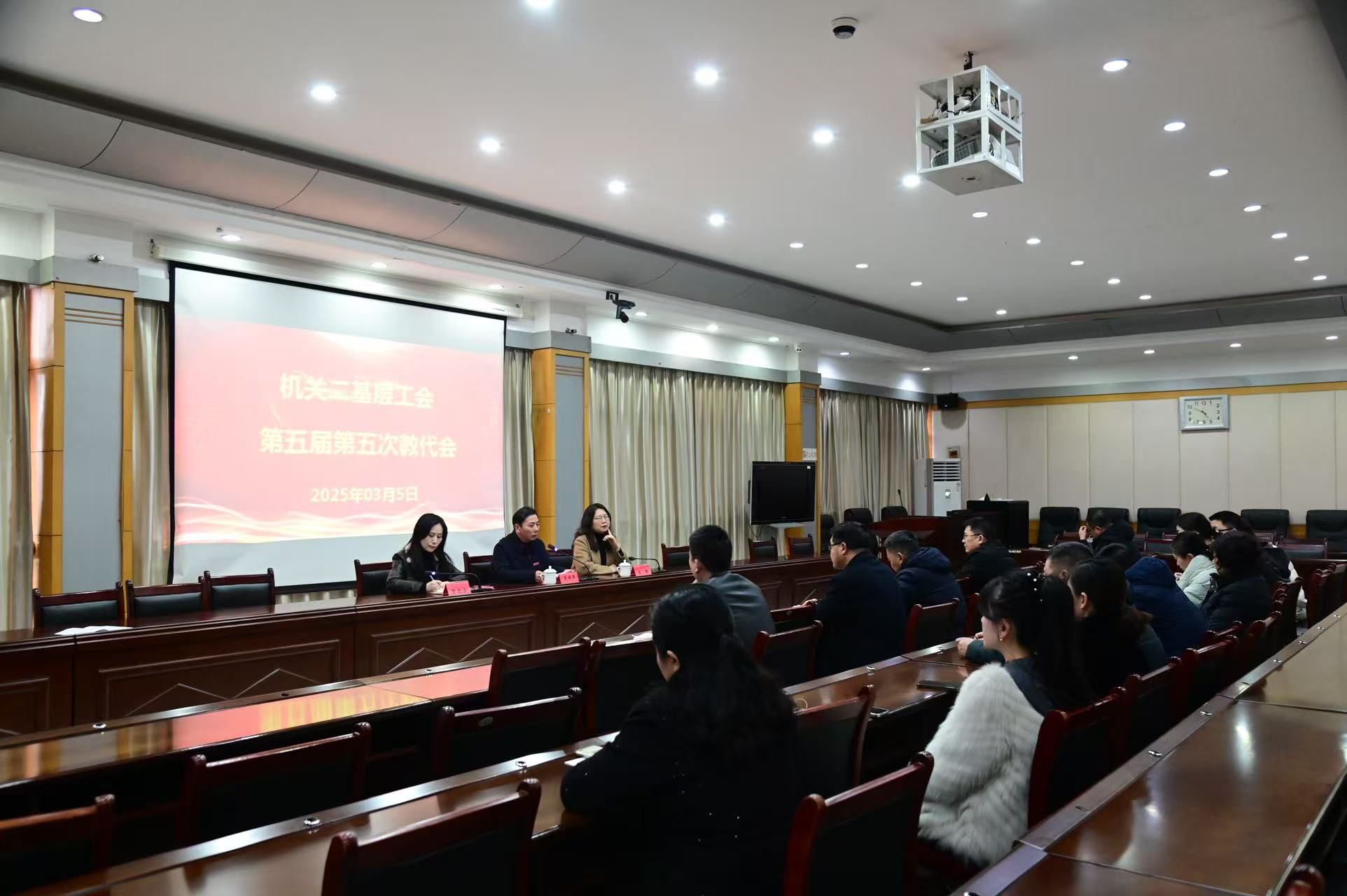 本站讯 (机关二基层工会 供稿)3月5日下午,机关二基层工会在办公楼第三会议室召开了第五届第五次教代会,校党委委员、副校长李建军出席,校工会副主席姜敏陪同参加,机关二基层工会代表参加了会议。
