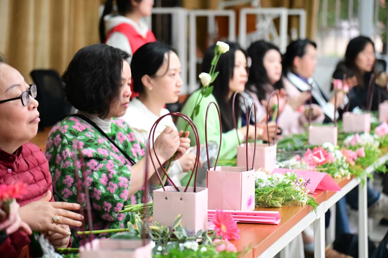 本站讯(工会 供稿)为纪念第115个“三八”国际劳动妇女节,展现新时代女性风采,3月12日下午,beat365官网工会、妇联精心策划的庆三八国际劳动妇女节“花香润初心,巾帼绽芳华”花艺活动在大学生多功能厅温馨举行。来自26个基层工会的女教职工热情参与,共赴一场春天的美丽邂逅。