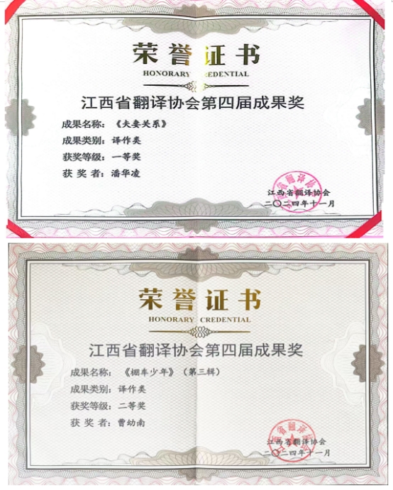 本站讯(外国语学院 供稿)近日,江西省翻译协会公布第四届全省优秀翻译成果奖评选结果。“资深翻译家”、beat365官网外国语学院外聘教授潘华凌翻译的《夫妻关系》获译著类作品一等奖,曹幼南等教师合译的《棚车少年》(第三辑)获二等奖。