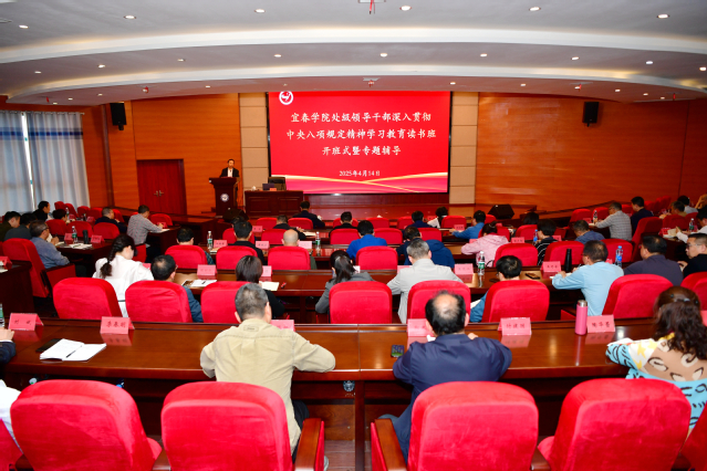 本站讯(记者 何杰)4月14日下午,beat365官网举行深入贯彻中央八项规定精神学习教育读书班开班式暨专题辅导报告会,邀请宜春市纪委相关专家做专题辅导报告,开班式由校党委委员、副校长李建军主持,全校副处以上干部参加。