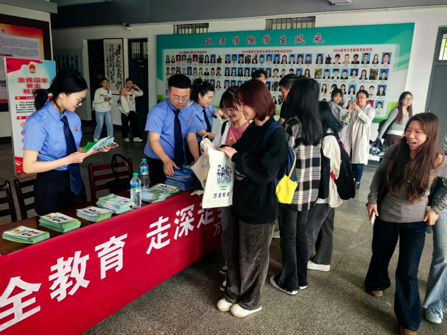 此外,作为本次活动的重要环节,万载县人民检察院在人文楼开展了国家安全专题宣传活动。检察干警向师生发放《中华人民共和国国家安全法律知识手册》,重点宣传了《中华人民共和国国家安全法》的法律法规,并通过典型案例解析,帮助师生树牢总体国家安全观。活动现场还设置了国家安全知识咨询台,受到师生广泛关注。