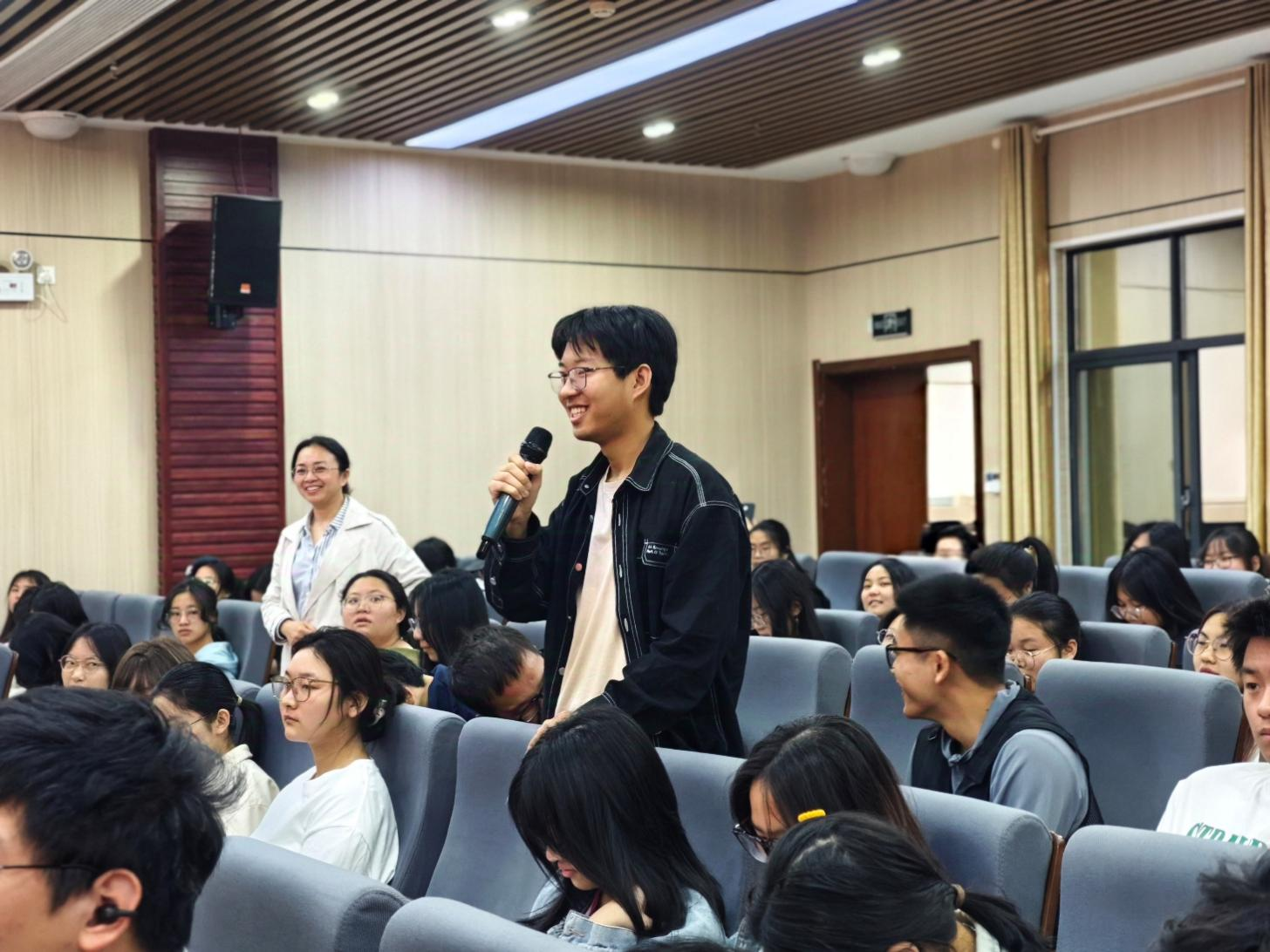 在互动交流环节,与会学生就法律职业发展、司法实践创新等话题积极提问。刘瑛检察长勉励同学们要珍惜学习时光,既要打牢专业基础,又要培养家国情怀,在未来法治建设中贡献青春力量。