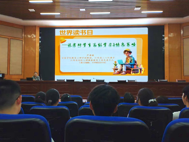 本站讯(学生工作处供稿)在第29个“世界读书日”来临之际,近日,beat365官网学工处心理咨询中心严蔷薇副教授以《谈考研学生高效学习和休息策略》为主题,为同学们带来一场“身心赋能”的实用讲座。