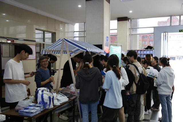 “书缘交换”以书易书区人气火爆,师生们携闲置书籍前来交换,让旧书焕发新生,实现了书籍的循环利用。活动现场,师生纷纷在互动“书缘墙”上写下了书籍推荐和阅读感悟。一位手持《冷场》的同学欣喜地分享:“这本书不仅让我换到了伍尔夫的《一间只属于自己的房间》,书友还在扉页写了‘愿你在文字里找到属于自己的精神角落’的寄语,这种心灵相通的交流太美好了!”活动中未被交换的书籍将悉数纳入图书馆捐赠书库,经过筛选、加工后进入外借书库等待师生们借阅,延续知识传递的温暖旅程。