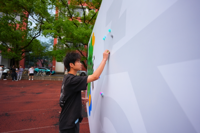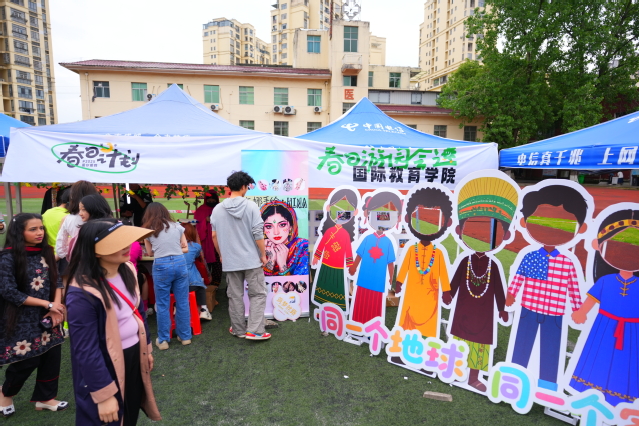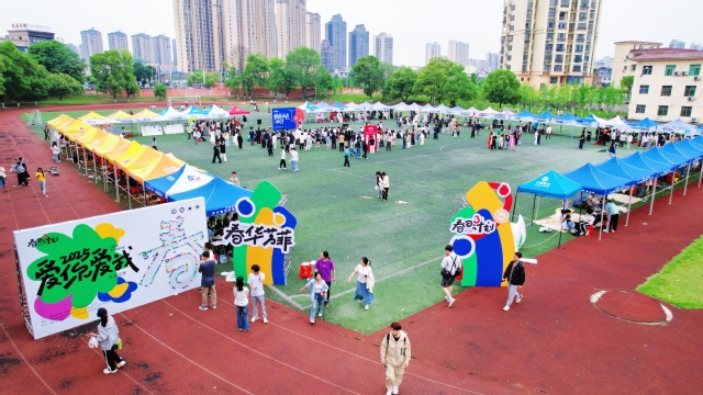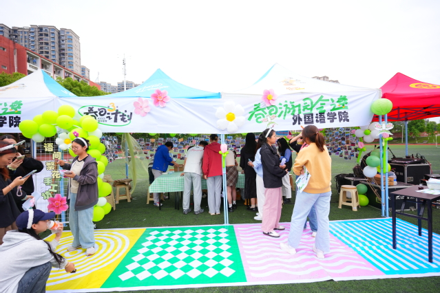 在活动打卡区,师生们共同用2025个瓶盖绘制出一个“春”字。在春日“话”开一站式学生社区专区,学长学姐们分享“考研干货”,并通过趣味小游戏帮助同学们放松身心。春日派对区,同学们在舞台上或唱或跳,展现青春活力。