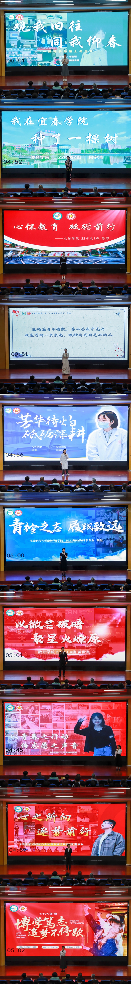 经过前期严格的初选和复评,来自全校各教学院的20名优秀候选人脱颖而出,站上终评会的舞台。他们以坚定的理想信念、扎实的专业素养和昂扬的奋斗姿态,生动诠释了新时代青年的使命担当。在展示环节中,他们不仅分享了在专业学习、科研创新、社会实践等方面的优异成绩,更深情讲述了如何在志愿服务中践行“奉献、友爱、互助、进步”的精神,在乡村振兴、社区服务等实践中厚植家国情怀。他们的成长故事,充分体现了学校“五育并举”育人体系的丰硕成果,展现了新时代大学生将“小我”融入“大我”的崇高追求。