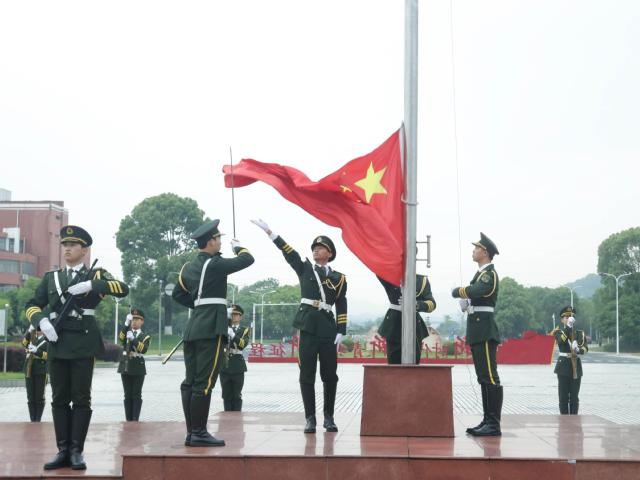 仪式在庄严肃穆的国歌中拉开序幕,全体人员肃立,升国旗,奏国歌,行注目礼。