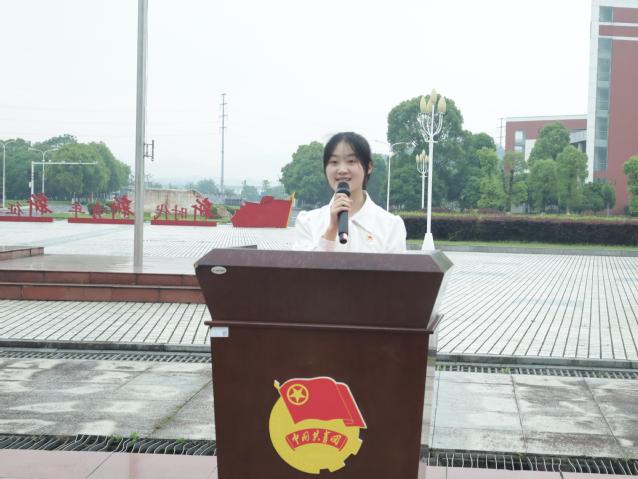 优秀团员代表马克思主义学院崔娜娜发言,作为新时代团员青年,应做“心有大我”的追光者、“肩有大任”的破浪者、“行有大德”的答卷者,用青春的智慧和力量谱写更加壮丽的青春之歌。