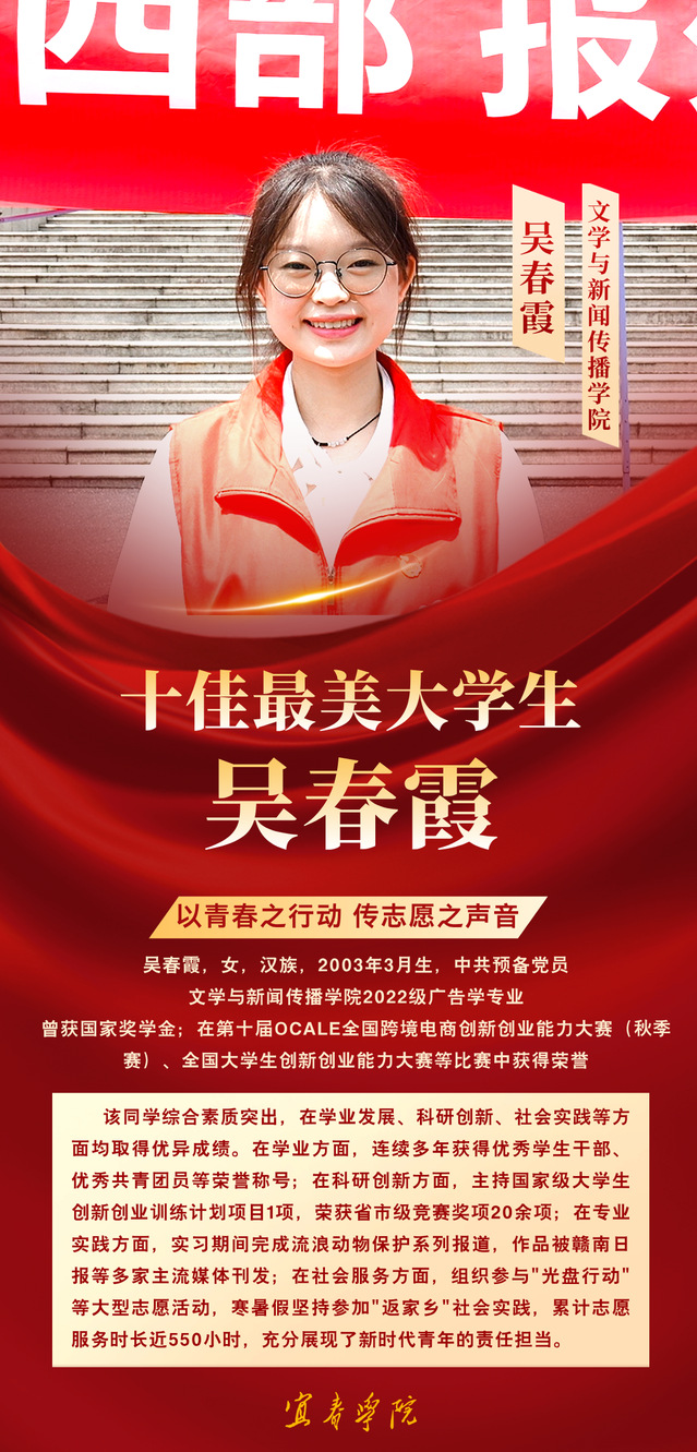 beat365官方网站十佳最美大学生——文学与新闻传播学院 吴春霞