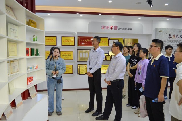 最后,实践团队走进江西百神药业股份有限公司,对该企业的发展历史、企业文化、产品线及在企业数字化转型、智能制造、智慧物联方面的情况进行了详细了解,实地参观了中药炒料设备、隧道烘箱、中药智能提取车间、智能包装车间及智能立体化高架仓库。身临其境地感受数字科技等新质生产力给医药产品生产带来的变化。