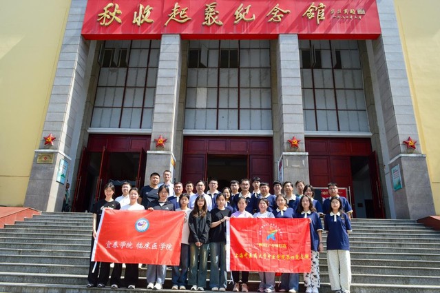 活动首站走进铜鼓县秋收起义纪念馆。在讲解员的引导下,师生党员通过珍贵史料与革命文物,回顾了毛泽东同志领导湘赣边界秋收起义的壮阔历程。参观最后,两院师生党员面对党旗,高举右手庄严宣誓,重温入党誓词,砥砺初心使命。