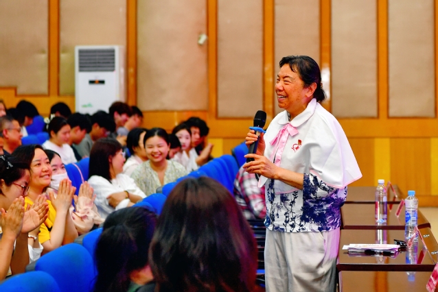 宣讲会上,邹德凤结合自身五十余年的医疗服务和三十余载志愿经历,生动诠释了“奋斗的青春最幸福”的深刻内涵。从医院病房到社区街道,从春运火车站到疫情防控一线,她用近9万小时的志愿服务时长践行了“终身志愿者”的誓言。她特别提到,每周带领团队深入社区开展临终关怀、护理老人,用专业与温情守护生命的尊严。“志愿服务虽苦,但传递信念的脚步永不停歇。”邹德凤坚定地说道。