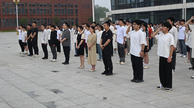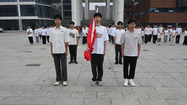 仪式现场庄严肃穆,国旗护卫队迈着整齐有力的步伐,护送国旗入场。“升国旗,奏国歌!”全场师生目光坚定,行注目礼,鲜艳的五星红旗缓缓升起。