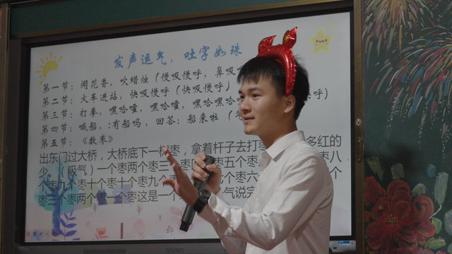 课堂上,宣讲员们结合红色小故事《一件棉衣》,借助角色扮演、表达的“外部技巧”等内容,深入浅出地为学生们传授语言表达的技巧,引导学生运用普通话的重音、停连技巧传递情感。