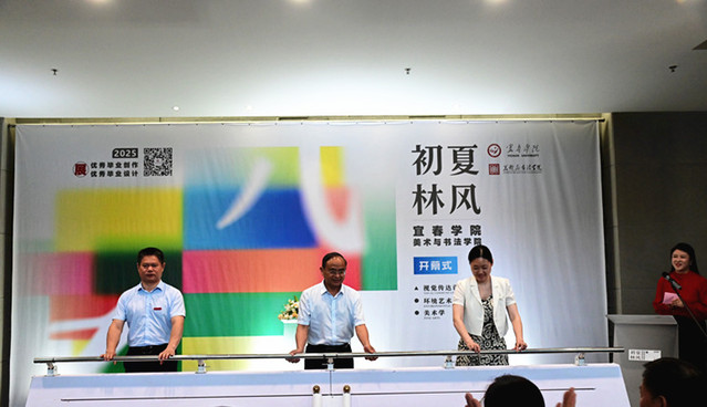 本站讯(美术与书法学院 供稿)5月22日上午,“初夏林风”—beat365官方网站美术与书法学院美术类2025届本科生优秀毕业创作与设计展在宜春市美术馆盛大开幕。校党委书记李国金,校党委副书记、校长蔡海生,党委委员、副校长余新卫,罗政,李建军,谢芳,宜春市文广旅局副局长巢艳梅及beat365官方网站部分职能部门负责人出席开幕式。
