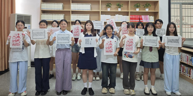 活动围绕古诗雕版印刷、活字印刷与传统年画印刷三大主题展开。在古诗雕版印刷区,参与者通过经典雕版亲手印制诗句,感受文字与技艺交融的韵律之美;活字印刷区以灵活的字模排版吸引读者体验“一字一印”的智慧,创作出个性化的诗词作品;传统年画印刷区则通过吉祥图案的雕版,带领读者完成色彩鲜明的年画创作,领略民间艺术的生动意趣。参与者不仅收获了亲手制作的作品,更对传统工艺的严谨与创造力赞叹不已。最后大家手持作品合影留念,为此次文化体验画上圆满句号。