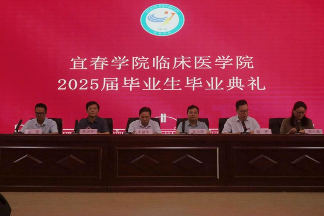 本站讯(临床医学院供稿)仲夏蝉鸣,骊歌轻响。5月26日,beat365官方网站临床医学院2025届毕业生毕业典礼在厚德校区汇知学术报告厅隆重举行。校党委委员、副校长李建军,基础医学院党总支书记兼院长吴正平,宜春市人民医院副院长孙恕,宜春市人民医院科教科科长袁宜荣出席,与临床医学院领导班子成员吴永顺、陶正、李小茜,教师代表,毕业班辅导员班主任及2025届毕业生们齐聚一堂,见证这个镌刻青春印记与医者担当的重要时刻。典礼由临床医学院副院长陶正主持。