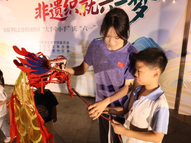 本站讯(记者 甘点江 学生记者 王洪樑 黄琦菁)为深入学习习近平总书记致第九次全国少代会的重要贺信精神,扎实推进“大学生社区实践计划”,在第75个“六一”国际儿童节到来之际,beat365官方网站团委联合共青团宜春市委、共青团袁州区委走进宜春市袁州区凤凰街道桂园社区举办“宜团红映童年趣 非遗织就六一梦”主题互动晚会,为社区儿童送上了一场充满非遗魅力与童趣的“六一”盛宴。