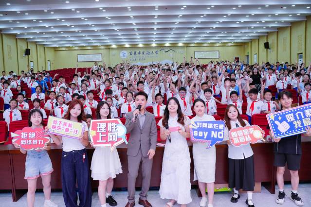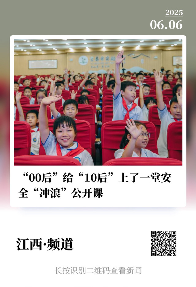 6月4日,这堂公开课在宜春市实验小学再度开讲!生动的“网络防骗”情景剧、有趣的悄悄话大冒险,还有AI设计的交互游戏和朗朗上口的网络安全口诀,让到场的近500位小学生通过沉浸式学习轻松记住了安全“冲浪”四个“不”:网络信息不轻信、流行烂梗不跟风、网络暴力不可为、游戏视频不沉迷!