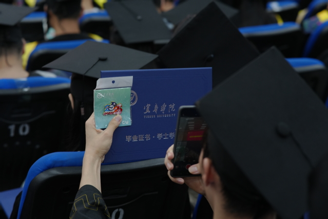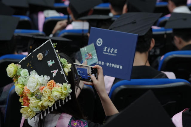 主席台上,校领导们为毕业生颁发证书,缓缓将学位帽上的帽穗从右边拨到左边,象征着毕业生们完成身份的转变,从校园学子正式成为校友,即将踏上新的人生征途。