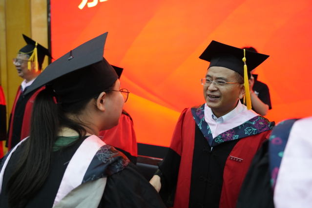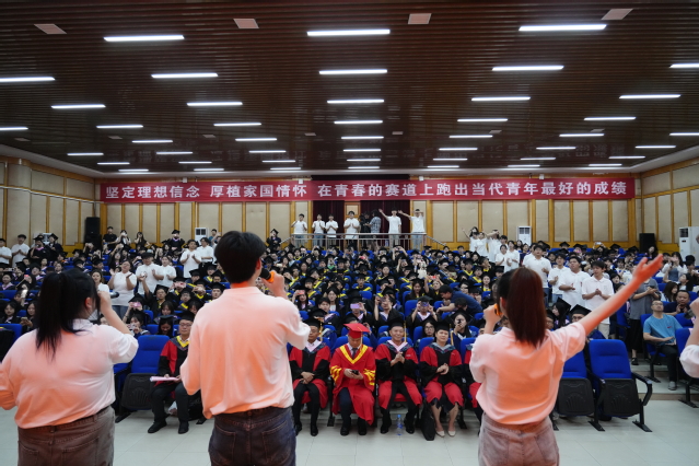 蔡海生以“不负热爱 奔赴山海——为强国复兴伟业贡献青春力量” 为题发表致辞,向5324名毕业生致以热烈祝贺,激励他们以“厚德、尚能、博学、笃行”的校训精神投身强国建设新征程。他深情回顾了毕业生们在创新竞赛、学术科研、考研考公、文体舞台、志愿服务等领域的卓越表现。