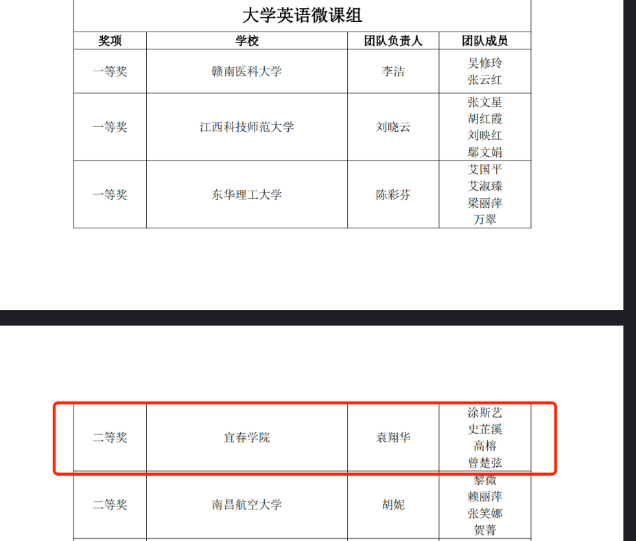 在微课组作品评比中,大学日语微课组张玉琪团队作品主题突出,Al情境融入,视效流畅,在25件参赛作品中排名第三,斩获一等奖;大学英语微课组袁翔华团队作品明辨修辞、贯通文化,设计巧妙,在31件参赛作品排名第四,获得二等奖,充分展现了学院教师在教学资源数字化与信息化方面的强劲实力。