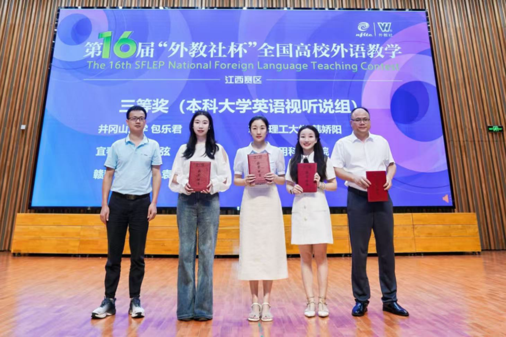 本站讯(外国语学院 供稿)近日,由江西省高等教育学会主办,上海外语教育出版社和江西科技师范大学承办,江西省外语学会协办的第十六届“外教社杯”全国高校外语教学大赛(江西赛区)在南昌落下帷幕。本次大赛设授课组和微课组两个组别,来自全省53所高校的70余名教师参加了授课组比赛,微课组共收到参赛作品56件。外国语学院教师团队凭借扎实的教学功底,精心备赛,发挥出色,斩获一等奖2项、二等奖1项、三等奖1项,再度刷新了在该赛事中的最佳成绩,为学校争得了荣誉。