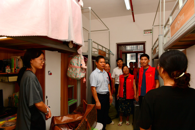 本站讯(经济与管理学院 供稿)7月2日,经济与管理学院顺利完成厚德校区首批搬迁工作。校党委副书记、校长蔡海生,校党委委员、副校长余新卫来到搬迁现场,深入宿舍走访学生,确保搬迁各环节高效衔接。